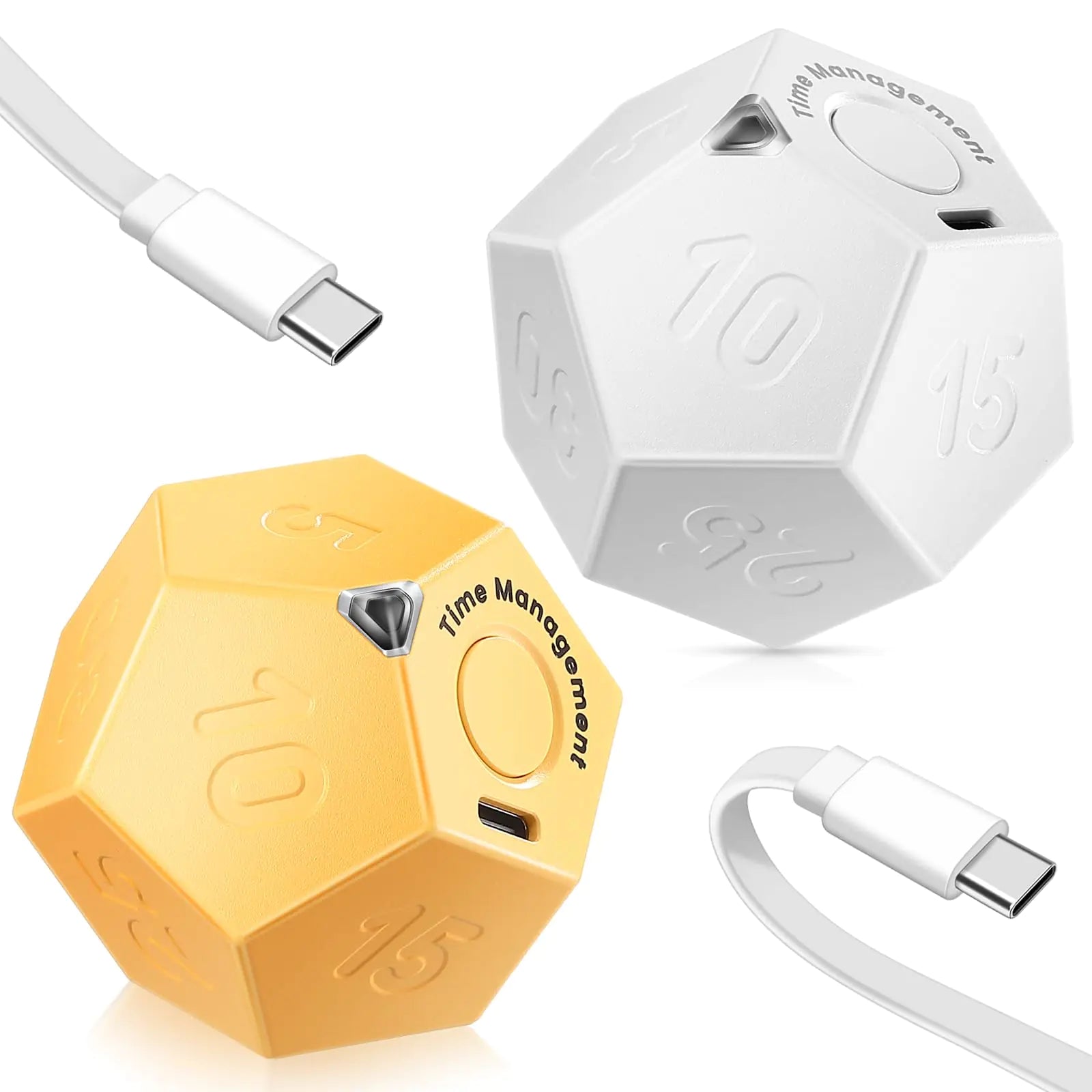 Konohan 2 Pcs Cube Timer Rechargeable Mini Pomodoro Timer 11 Preset Time Desk Productivity Timer with Sound Vibrate Light Alarm Flip for Time Management ADHD Workout Study Cooking White and Yellow