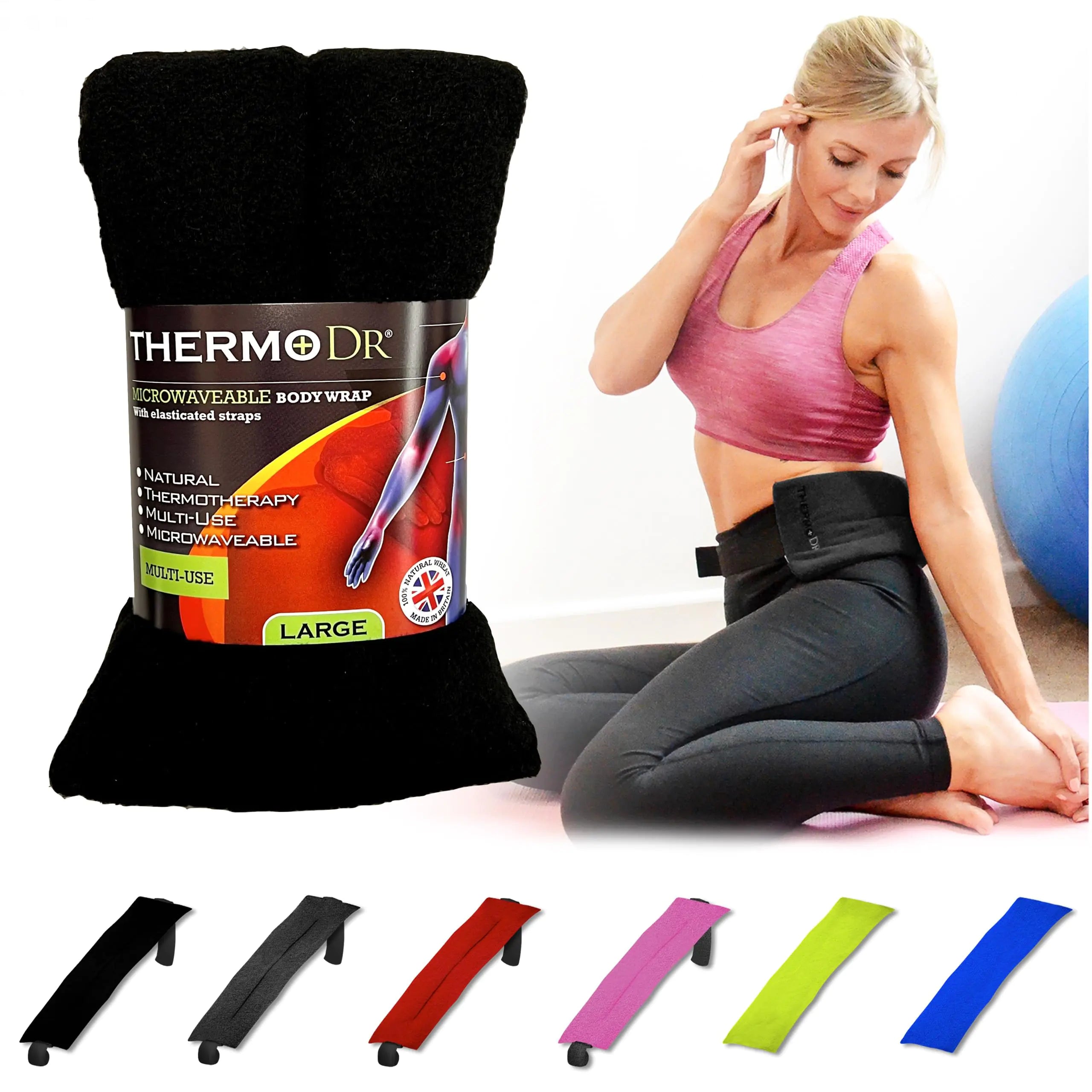 ThermoDR Wheat Bags Microwavable Heat Pack - Body Wrap Microwave Unscented Heat Pad with UK Cleaned Wheat for Body Discomfort Back Shoulder Stomach & Neck with Elasticated Straps - Black